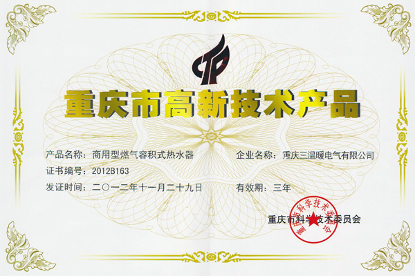 重慶三溫暖電氣有限公司創(chuàng)建于1995年,是專業(yè)從事中央熱水系統(tǒng)和廚衛(wèi)電器產(chǎn)品的集研發(fā)、制造、銷售為一體的現(xiàn)代化企業(yè),主營(yíng):燃?xì)馊莘e式熱水器、商用熱水器的專業(yè)制造商,獲得了該行業(yè)國(guó)際標(biāo)準(zhǔn)--澳大利亞“AGA”認(rèn)證并遠(yuǎn)銷澳大利亞、新西蘭、印度、泰國(guó)、菲律賓、哥倫比亞、馬來西亞等國(guó)家和地區(qū)。